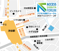 | 会場 | アクセス渋谷フォーラム(渋谷クロスタワー24階) 渋谷駅より徒歩3分! ●JR山手線、埼京線、湘南新宿ライン ●東京メトロ銀座線、半蔵門線、副都心線 ●東急東横線、田園都市線/京王井の頭線 「渋谷」駅より徒歩3分(路線により多少時間がかかります。) 〒150-0002 東京都渋谷区渋谷2-15-1 渋谷クロスタワー24階 |