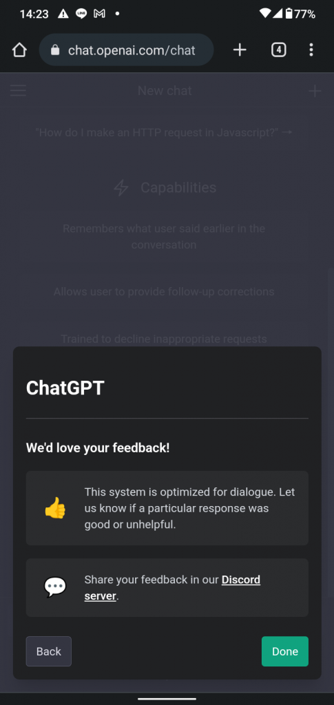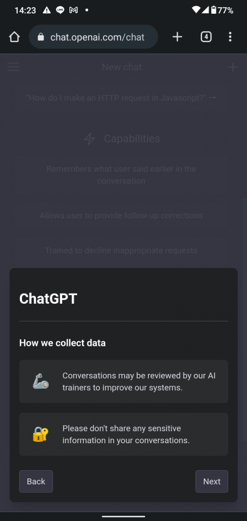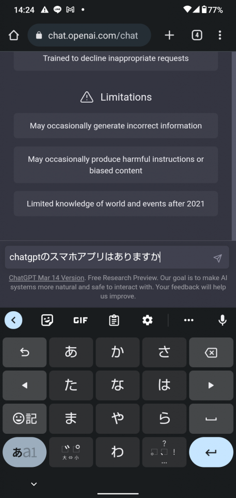 以上がスマホからChatGPTを使うための始め方です。