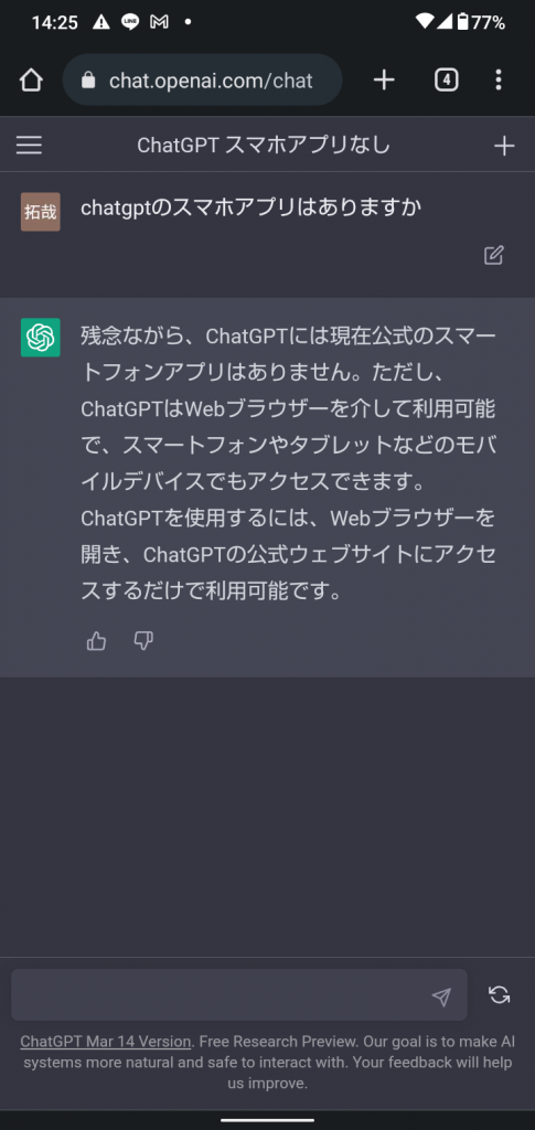 スマホでもchatgpt使えるんですね!
