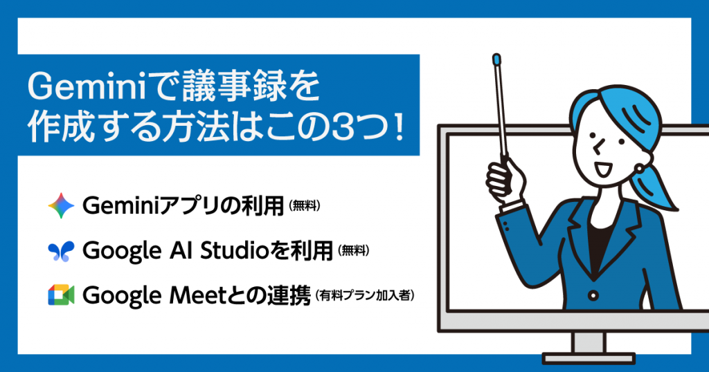 【解説画像付き】Geminiで議事録を作る方法3選|無料の使い方&注意点まとめ