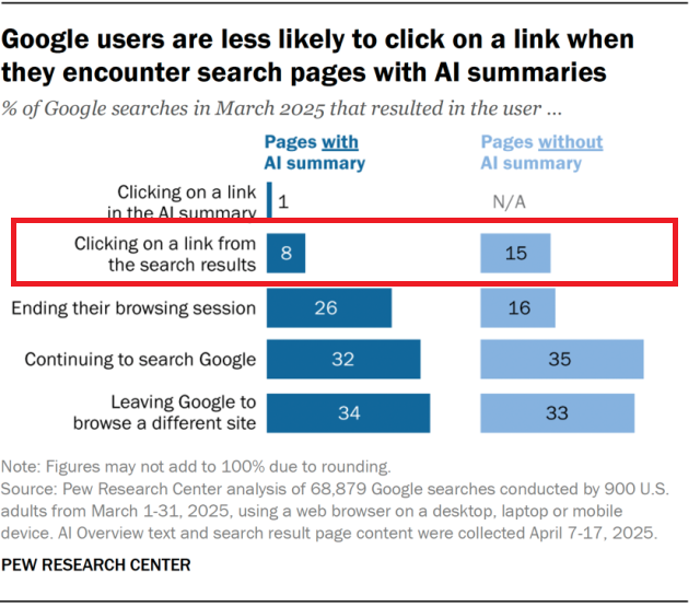 Google users are less likely to click on links when an AI summary appears in the results