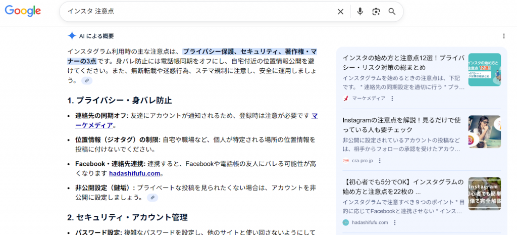 出典:Google検索「インスタ 注意点」