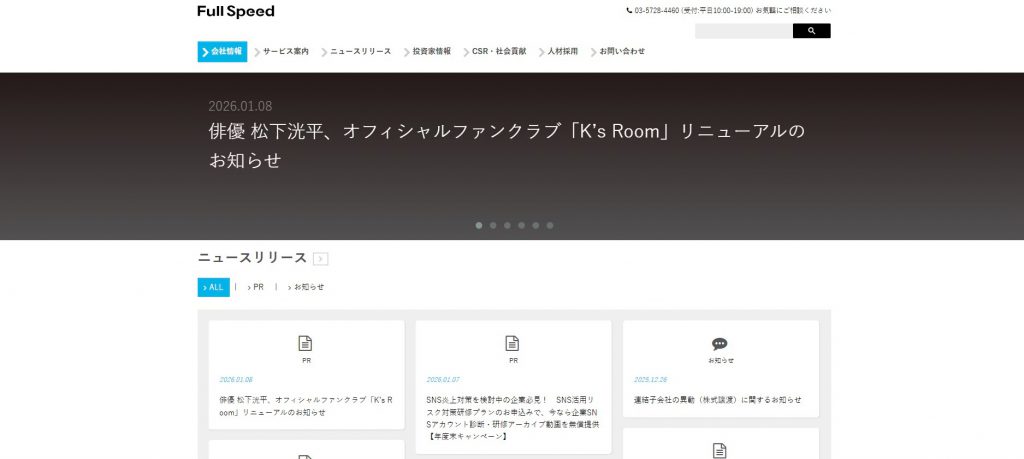 株式会社フルスピードは、SNSマーケティングの分野で2,500件以上の豊富な実績を持ち、企業から自治体まで幅広い業界のSNS運用に対応している代行会社です。最大の特徴は、通常のSNS運用に加えて「SNS炎上対策」や「リスク管理研修」など、企業の安全を守るサービスを提供している点にあります。リスク管理を重視する企業や、安心してSNS運用を外部委託したい企業に適したパートナーです。
