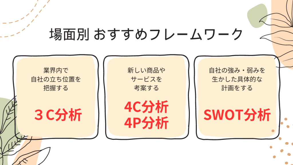 ここからは、競合分析で使えるマーケティングフレームワークを4つ紹介します。