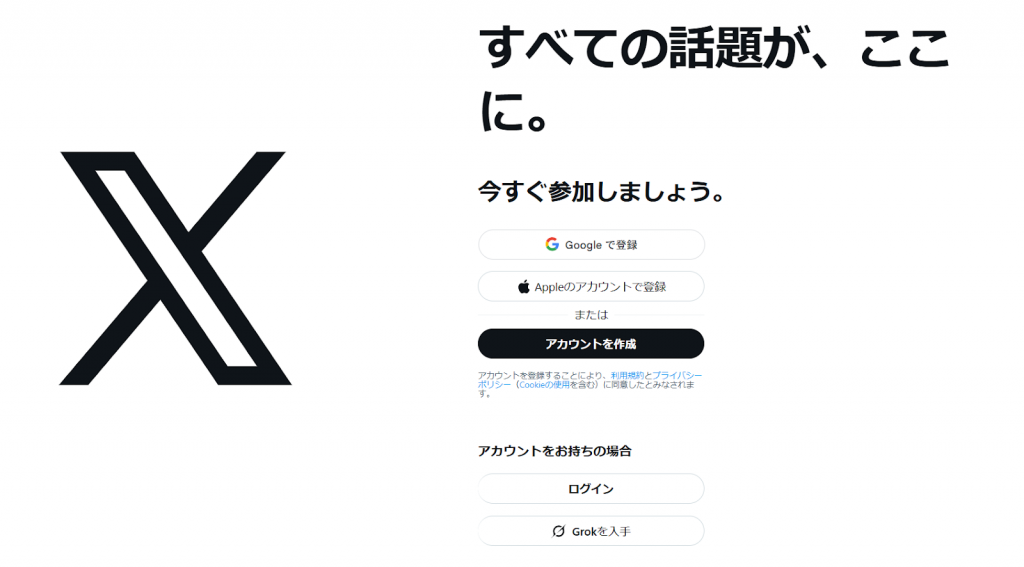 まずは、Xの公式サイトまたはアプリにアクセスします。