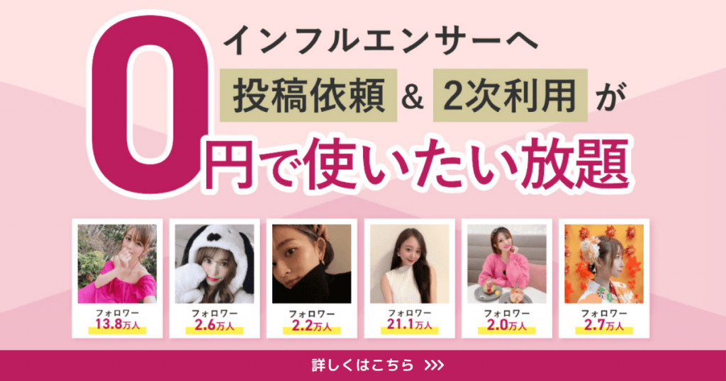 なお、弊社サービスの「Cuepid」では、初期費用0円でインフルエンサーとのコラボが可能です。ぜひ一度チェックしてみてください!