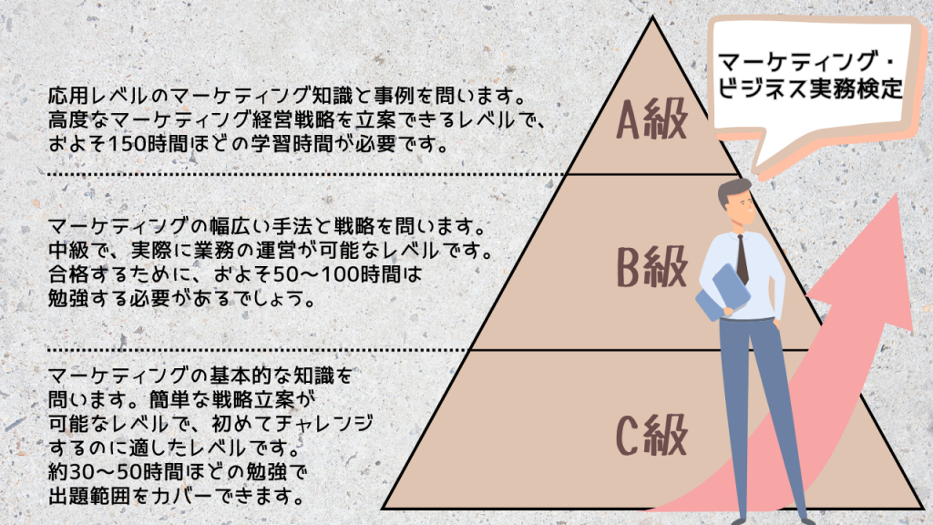 「マーケティング・ビジネス実務検定」は、業種に関係なく幅広いマーケティングの知識があることを証明する資格です。