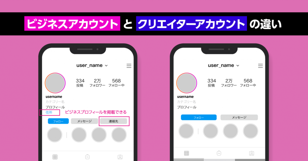 インスタのプロアカウント・ビジネスとクリエイターの違い