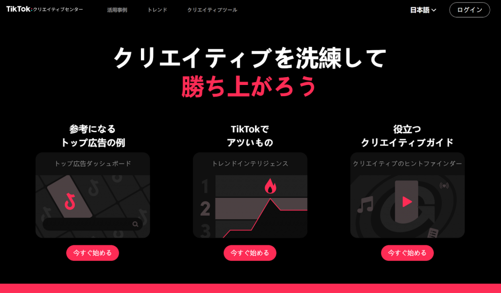 ここからは、TikTokクリエイティブセンターが持つ機能とできることについてご紹介していきます。実際にどう使うべきか悩んでいる方は必見です。